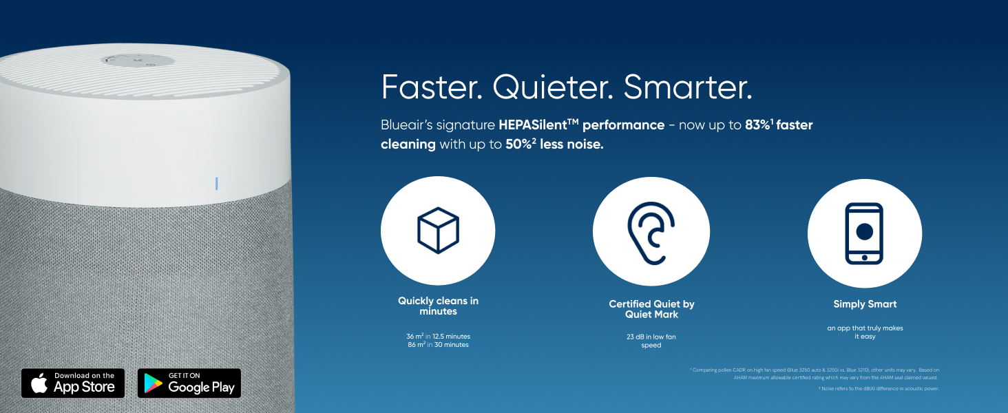 - MORE CLEAN AIR, FASTER: HEPASilent dual filtration technology delivers more clean air faster and uses less noise and energy than HEPA filtration alone, Cleans up to 86m2 living space in 30min or 36m2 medium room in about 12.5min on high.
