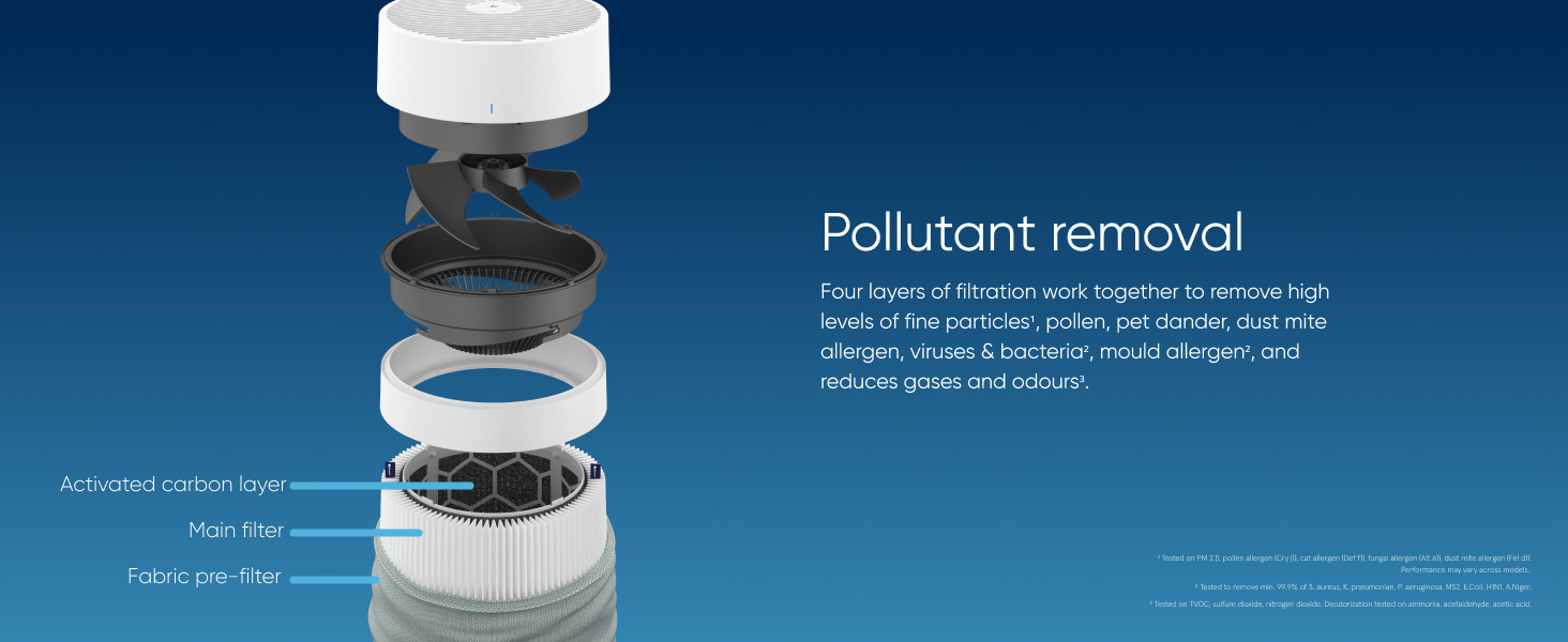 - FILTER 99.97% OF PARTICLES: Removes at least 99.97% of tiny airborne particles like viruses and smoke down to 0.1 microns, and captures pet dander, pollen, mould allergen and dust; carbon filter traps light household odours from smoking, pets and cooking.