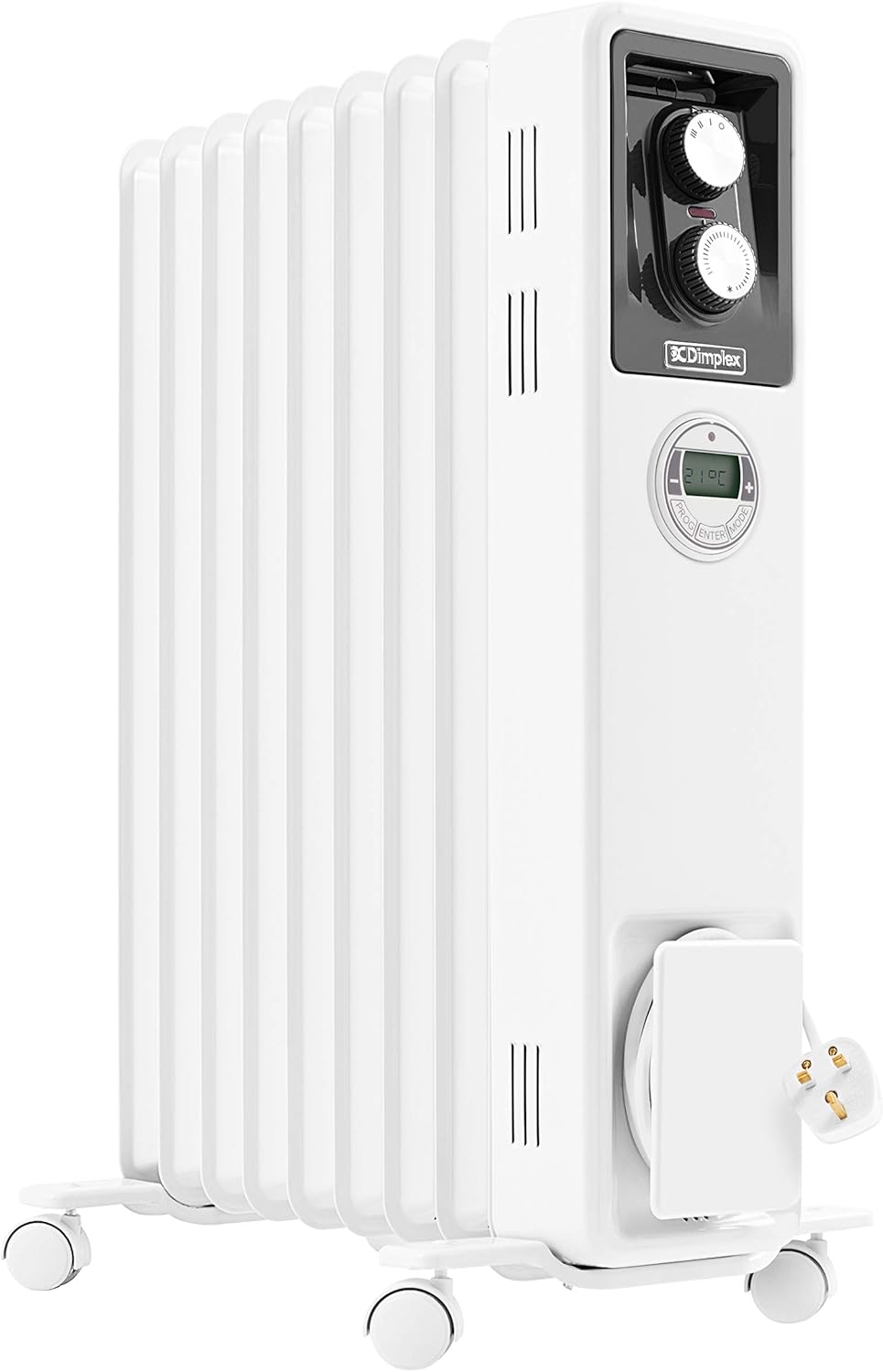 - DIMPLEX 2KW ECO LARGE RADIATOR – A compact yet versatile home heater with near silent operation, oil free energy saving technology, electronic 24 hour timer, LCD screen, thermostat and 3 heat settings.