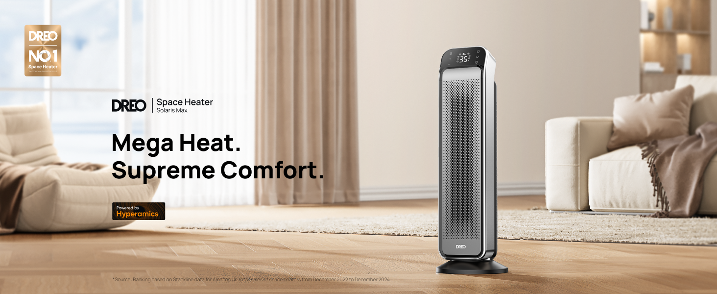 - The Ultimate Heating Experience: Dreo’s upgraded 25″ ceramic space heater brings 11.5 ft/s fast heat thanks to its new hyperamics thermal design, while the extended impeller doubles the heat range making it the ideal space heater for large rooms and warmer winters.