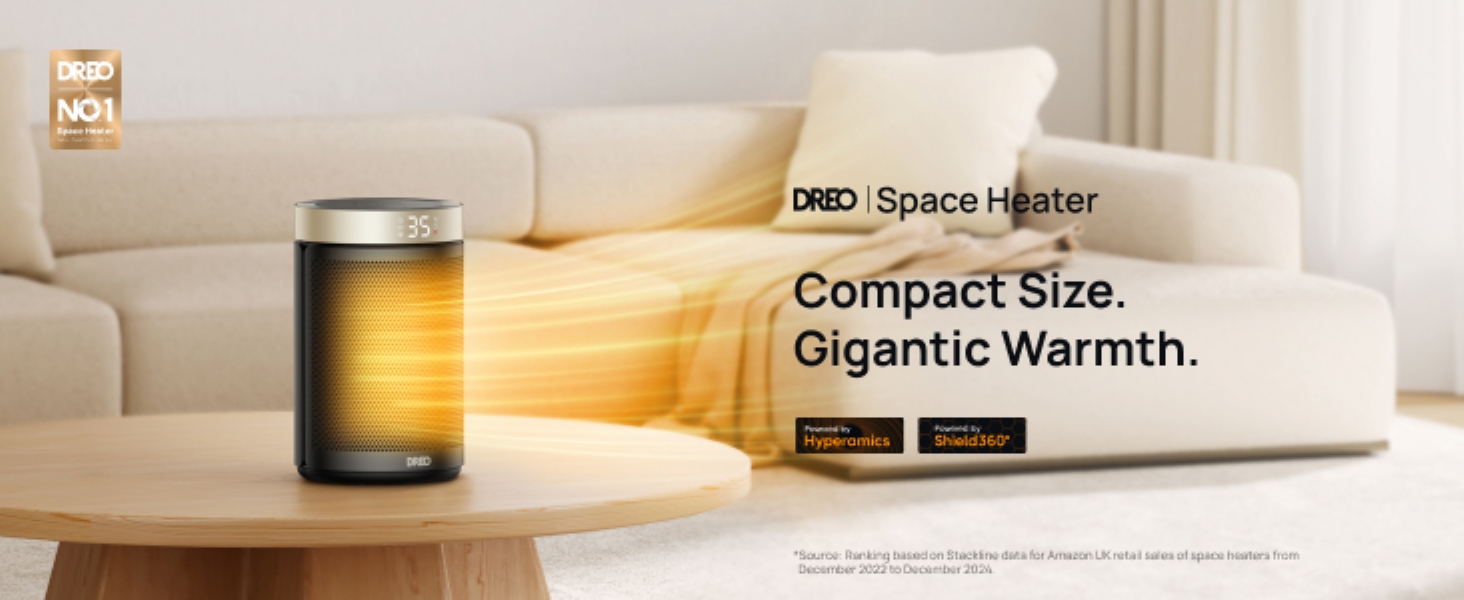 - Powerful heat that fits everywhere: Dreo space heaters for indoor combines Hyperamics 1500W advanced PTC system with a new heat funnel design to deliver heat within seconds and enhance warm air circulation for up to 200% farther reach than traditional heaters.