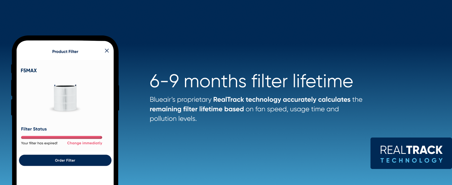 - APP ENABLED: Blueair smart air purifier app scheduling, air quality monitoring, Clean Air ETA, Welcome Home geofencing and RealTrack accurate 6–9 month filter tracking technology are customisable features; Alexa voice control available