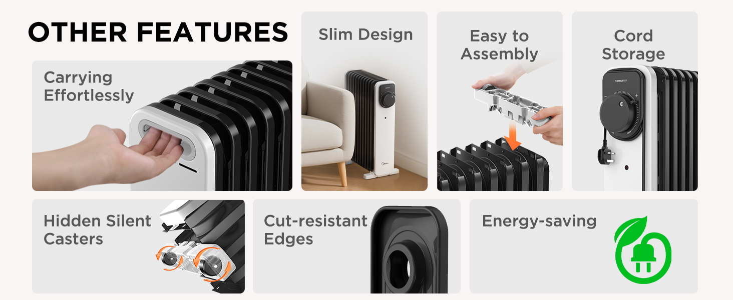 - Safe & Reliable Design: Built with safety in mind, this oil heater for home features tip-over auto shut-off and overheat protection. Its child-safe rounded corners and protective back cover help prevent burns and injuries, ensuring your family stays safe while enjoying quiet, consistent warmth.