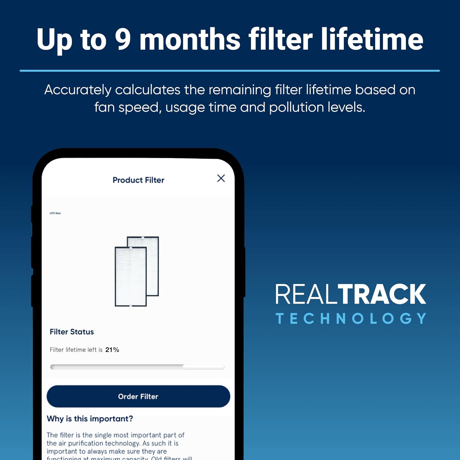 - LONG LIFE: Up to 9 months filter lifetime. Accurately track remaining filter lifetime based on fan speed, usage time and pollution levels in the Blueair app.